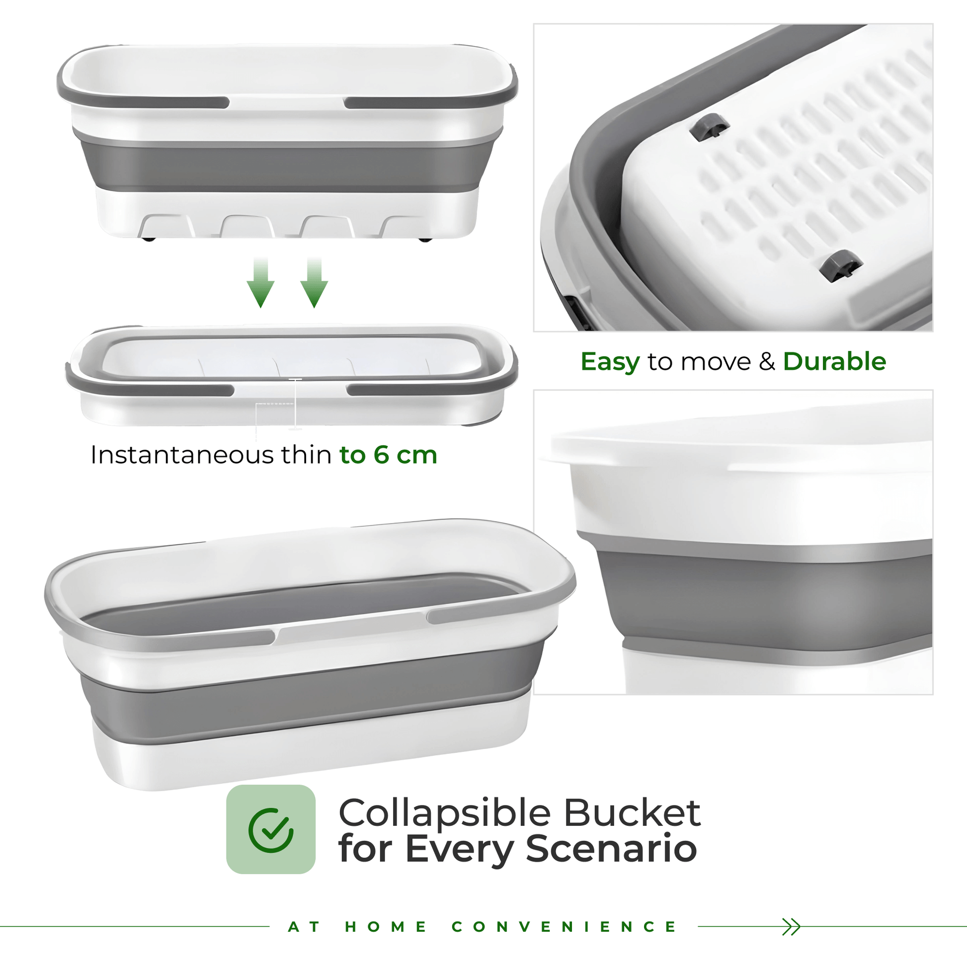 - Rectangle Collapsible Bucket: Compact and practical for easy clean-up.