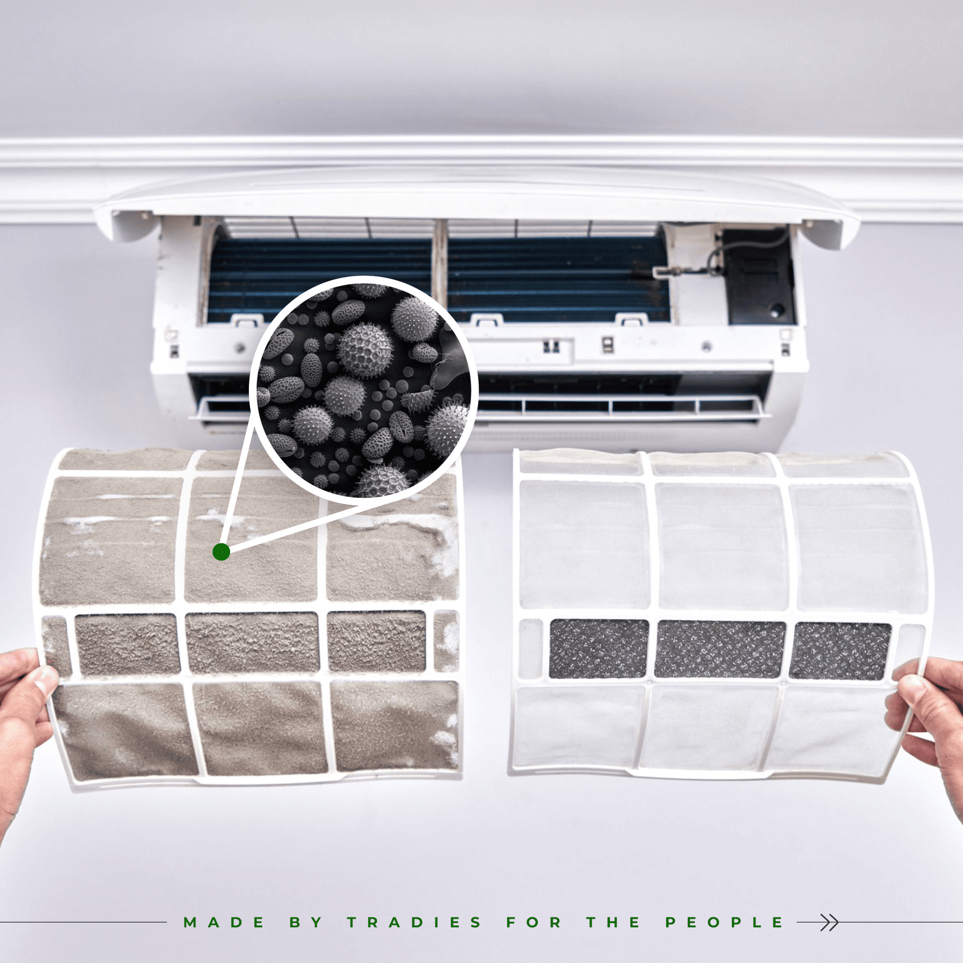 Your aircon is spreading hidden toxins, odours, and allergens through every room. Our DIY Aircon Cleaning Kit gives you everything you need to clean it yourself — in 15 minutes, with no tradie and no additonal tools.